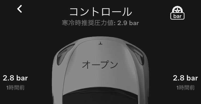 車載のTPMS(Tire Pressure Monitoring System)で、アプリ上からでも4輪すべての空気圧が確認可能です。