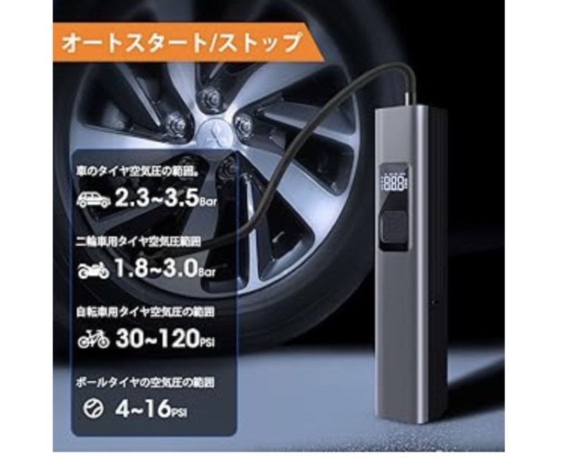 我が家のもう一台の車にはシガーソケットがないため、USB充電式の空気入れを選択しました。
